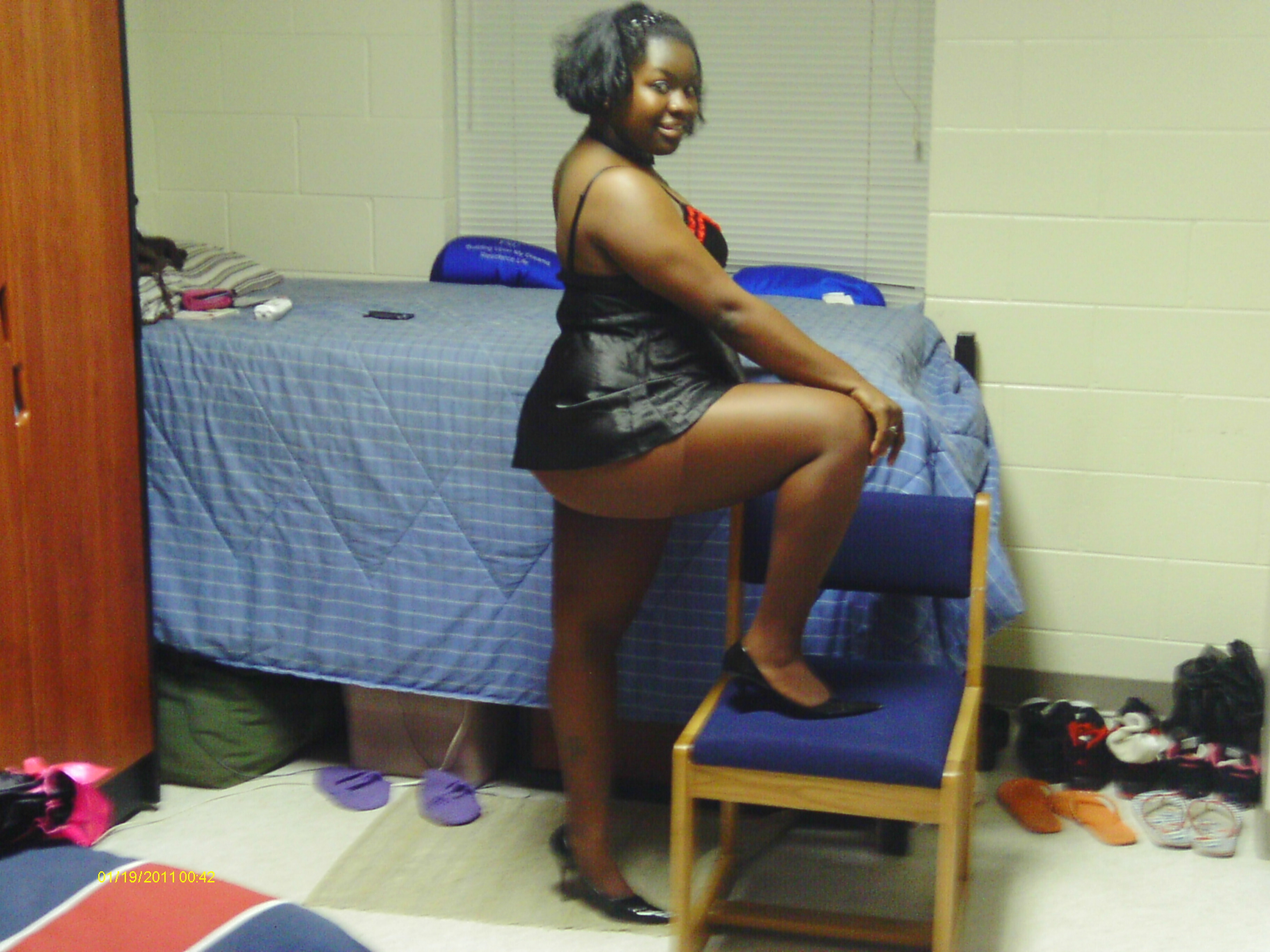 Met her on myspace, freshman in college, got her homegirl to snap these in her dorm room, she was very eager to oblige and be on the site. Lil thick freak.