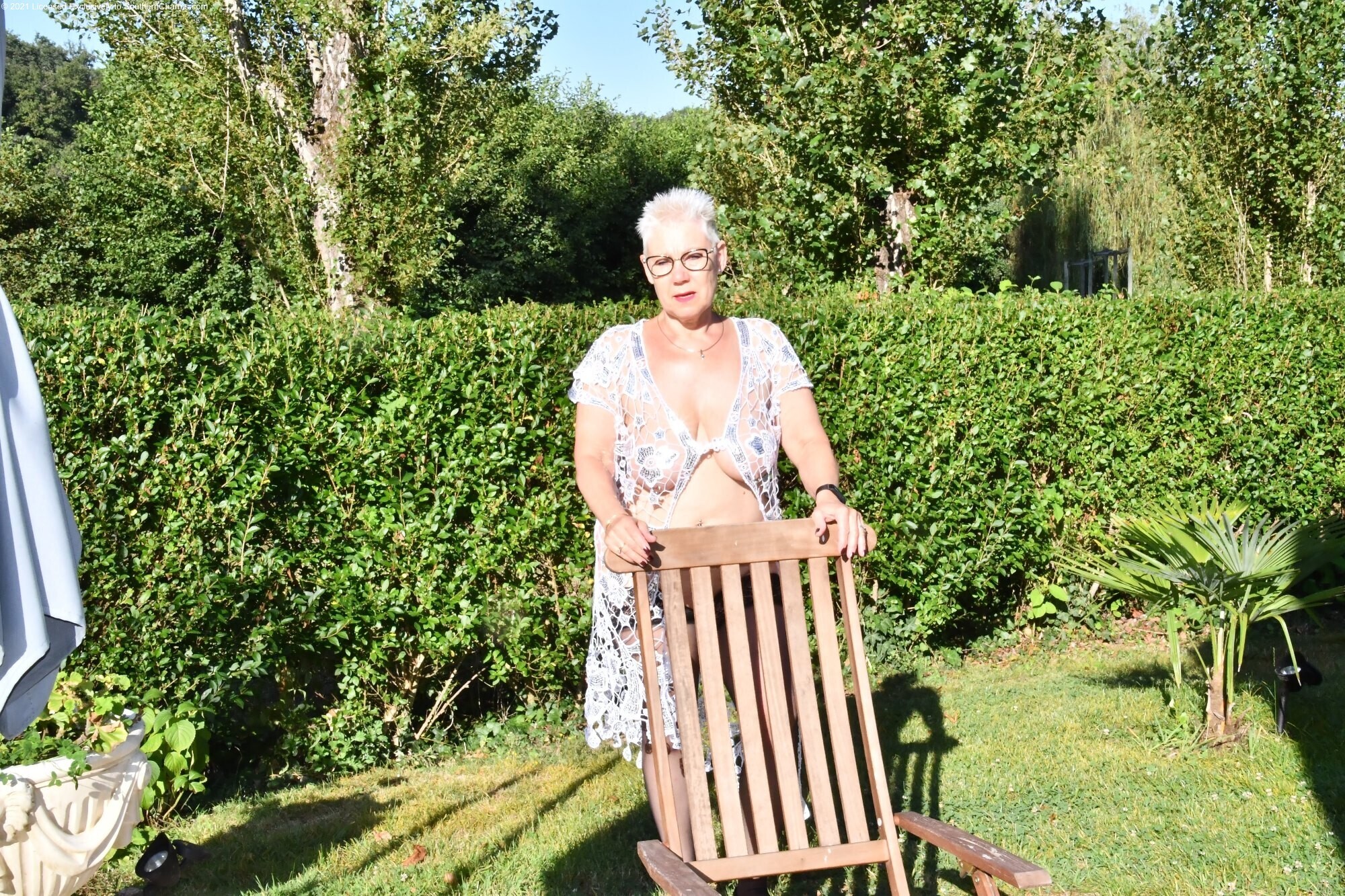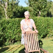 grandma, naked in the garden, at home