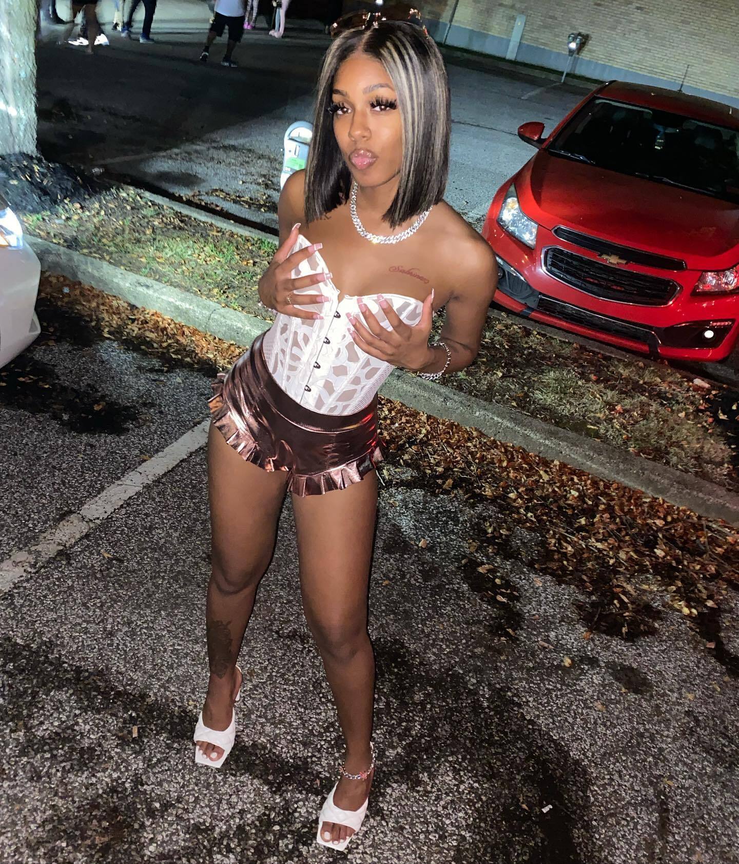 🍯 #caramel #brownsugar #hbcu #hbcux #collegex #college #brownhair #petite #petitex #sexyass #cutetoes #highheels #whitetoes #redbodysuit #fba #704