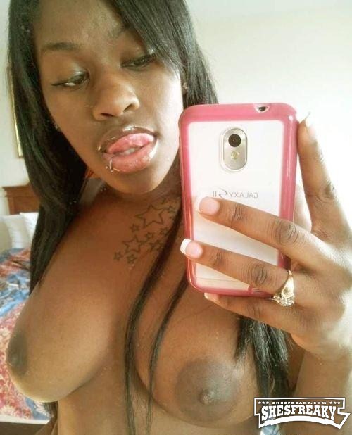 Ebony chick taking nude selfies