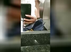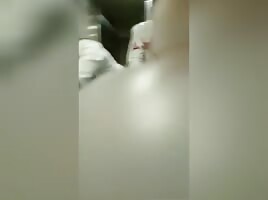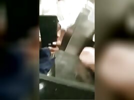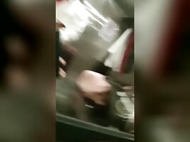 security taking doggy in the bathroom