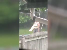 Madison on peri doing jumping jacks with tits out