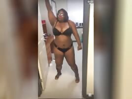 A beautiful big woman doing a striptease and dancing for you