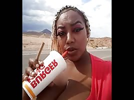 Awesome ebony babe with curvy ass and huge nipples