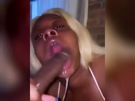 Blonde black bbw slobbering on dick