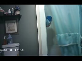 Busty Latina spy shower