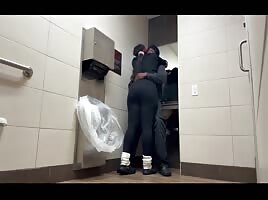 Double blowjob in restroom