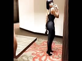 Fat Bitch shows Pussy In Body Suit
