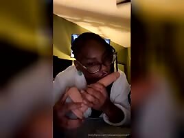 Thick ebony quirts on cam playing with dildo