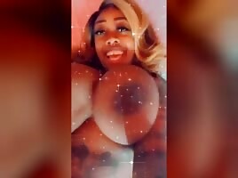 Ebony babe masturbating with Snapchat filter on