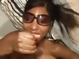 Brunette cute girl with glasses gives a nice blowjob