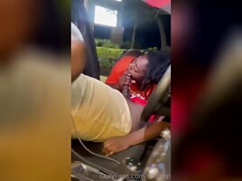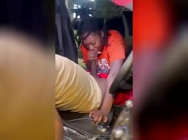 Girlfriend fucks black guy in car while cuck drives