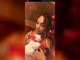 Black teen in stocking teasing her clit