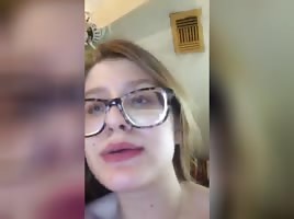 Hot nerdy teen strips and masturbates