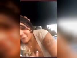 Playing with her pussy and tits in parking lot