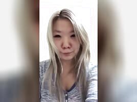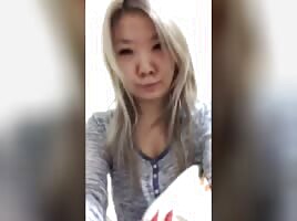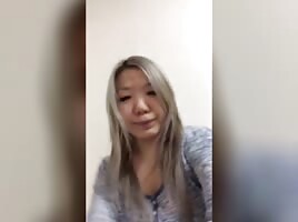 Asian gf sucking huge cock & taking cum