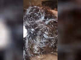 Horny ebony cums hard from fucking her dildo