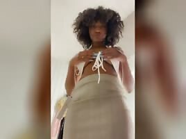 Black Amateur in Thong Bikini Gets Oiled Up