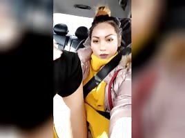 Asian girl deepthroating cock in a car