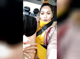 Sexy italian slut sucking me good in the car
