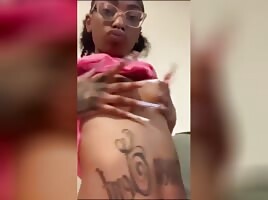 Sexy Petite Tatted Caramel Slim Baddie plays wit her perky titties #perkytits #smalltits #longnails #purplenails #slimbaddie #petiteframe #tittyshake #tittyplay #nosering #tatted #tonguering #glasses #curlyhair