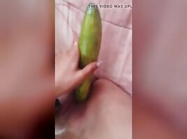 Sexy teen fucks cucumber