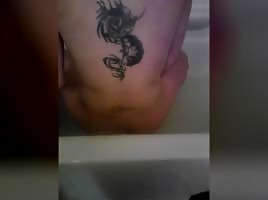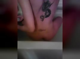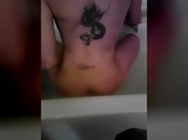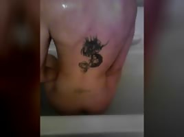 Fucking her ass with her dildo in the shower