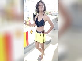 Slim Ebony THOT Pantyless at a Gas Station