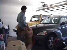 Nympho wife fucks Garbage man in the garage