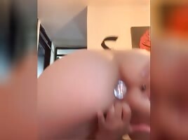 Sexy snow bunny playing with that pussy