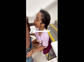 Hot asian sucking bf's black dick