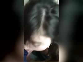 Hot asian sucking bf's black dick