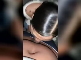 Hot asian sucking bf's black dick
