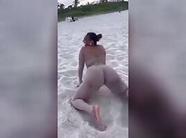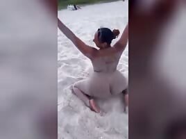 Twerking naked at the beach