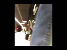 Horny babe showing her wet cunt in metro on public place